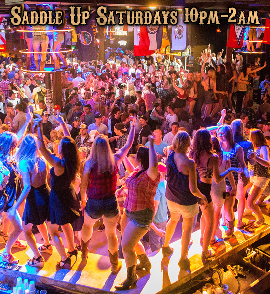 Free line dancing lessons Saturdays 8-10 PM, then DJs spin till 2:30 AM.
